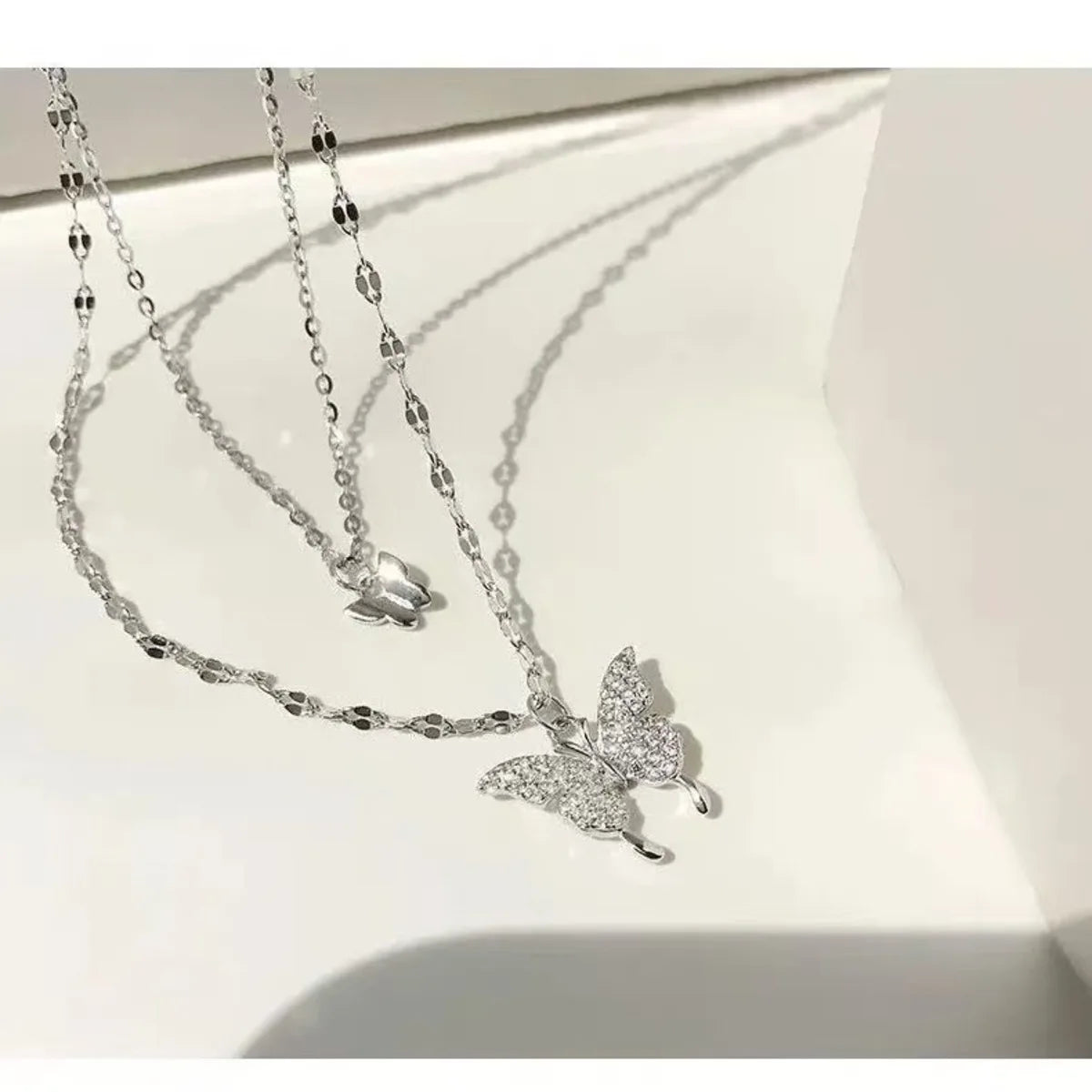 A sparkling double-layer necklace featuring a delicate butterfly pendant. Exquisitely designed, this piece adds elegance and charm to any outfit, making it perfect for parties, banquets, holidays, or gifting to someone special.